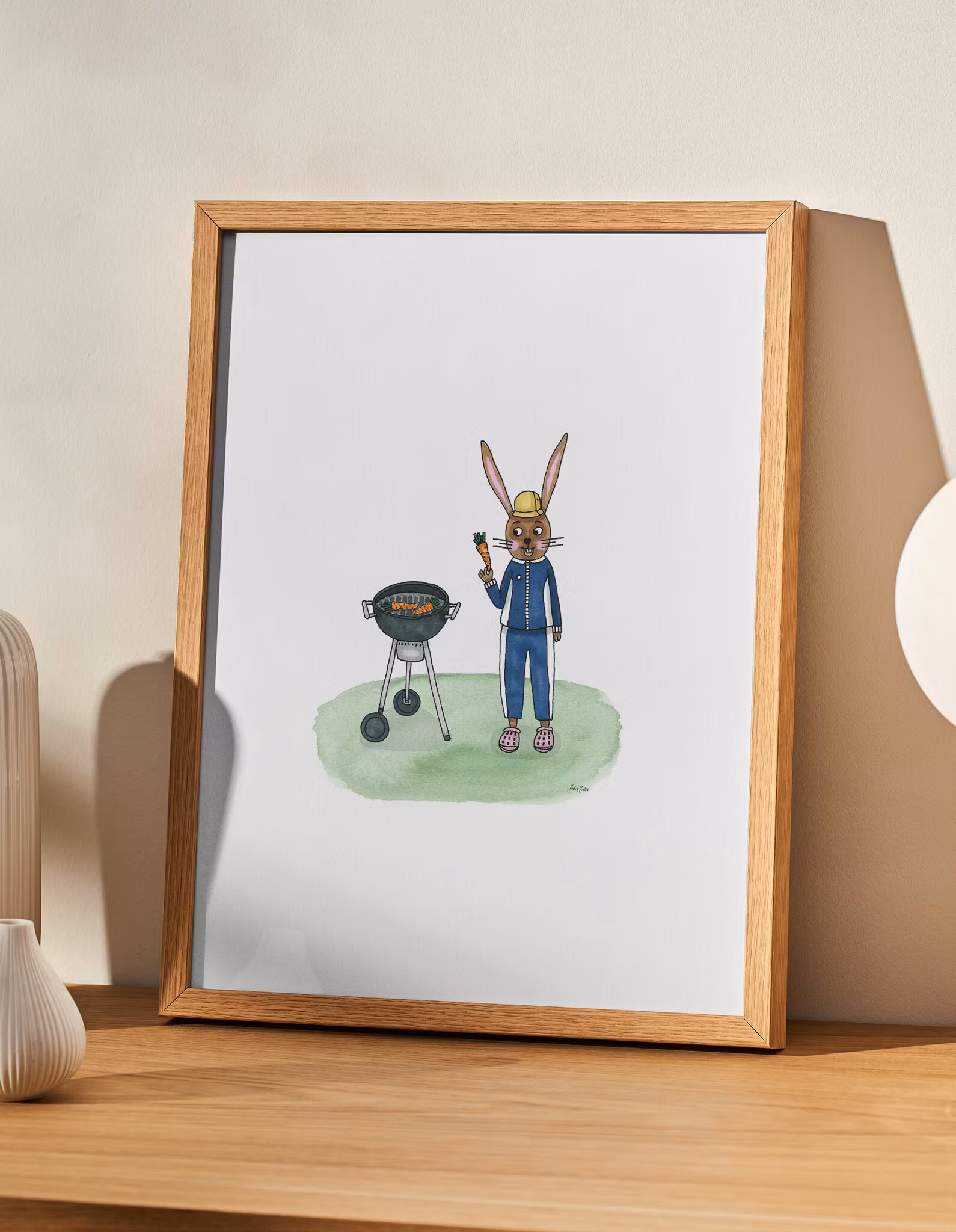 En lekfull och charmig poster med barnbokstema på kaninen Skuttis som grillar morötter. Illustration ur barnboken "Skuttis campar". Högkvalitativt print på 180 g FSC-certifierat, matt papper. Säljs i storlekarna 21x30 cm, 30x40 cm, 30x30 cm och 40x40 cm. Tillverkad i Sverige. Ram ingår ej.