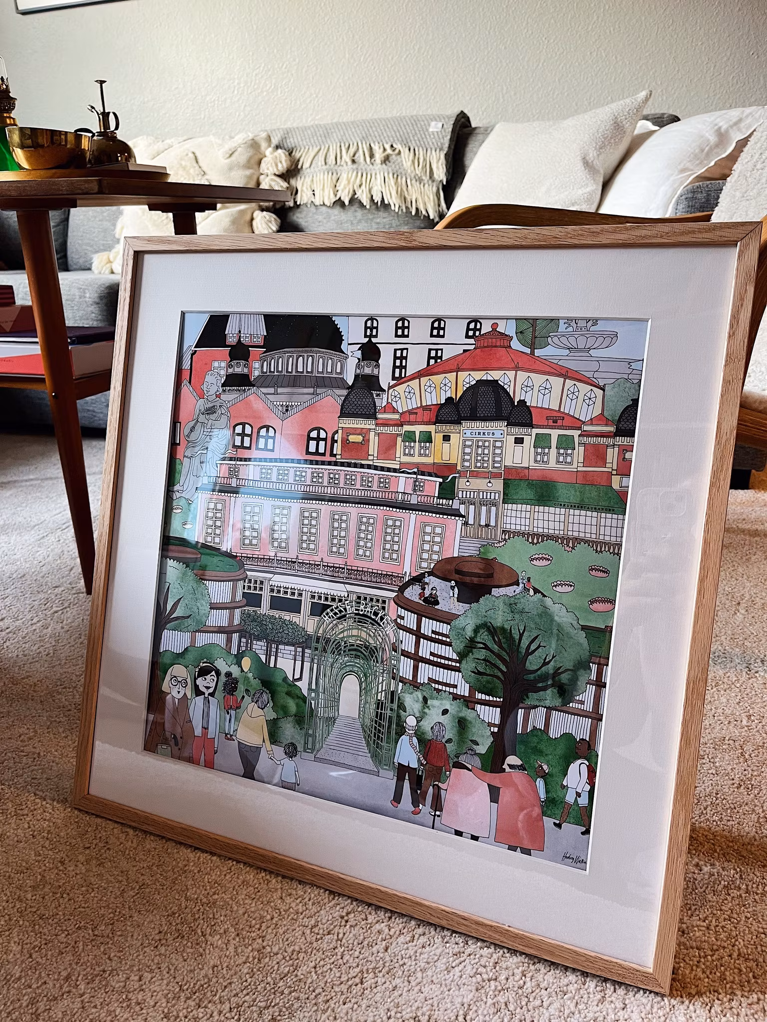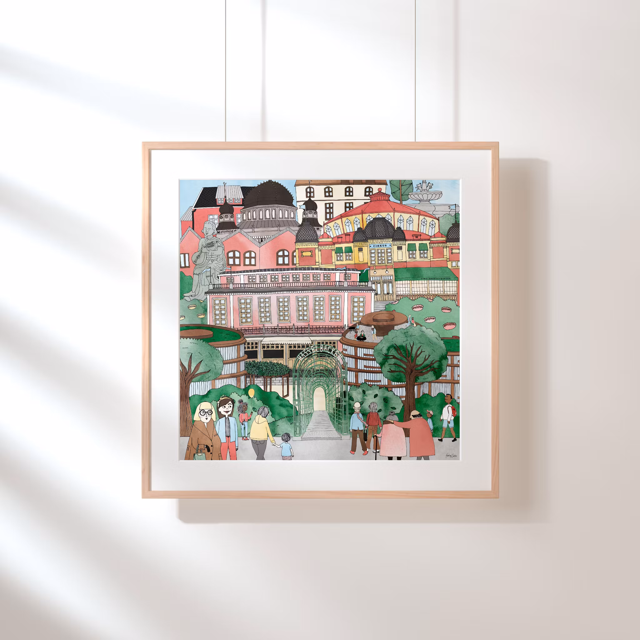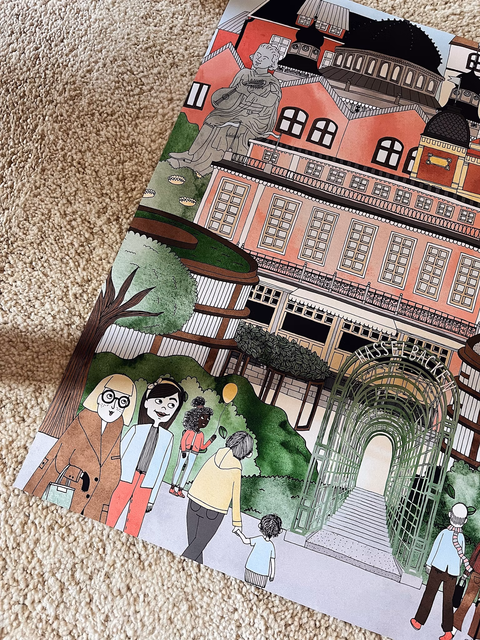 En detaljrik och charmig poster med Stockholmsmotiv. Människor, grönska och byggnader på Djurgården i härliga färger. Högkvalitativt print på 180 g FSC-certifierat, matt papper. Säljs i storlekarna 30x30 cm, 40x40 cm, 50x50 cm och 60x60 cm. Tillverkad i Sverige. Ram ingår ej.
