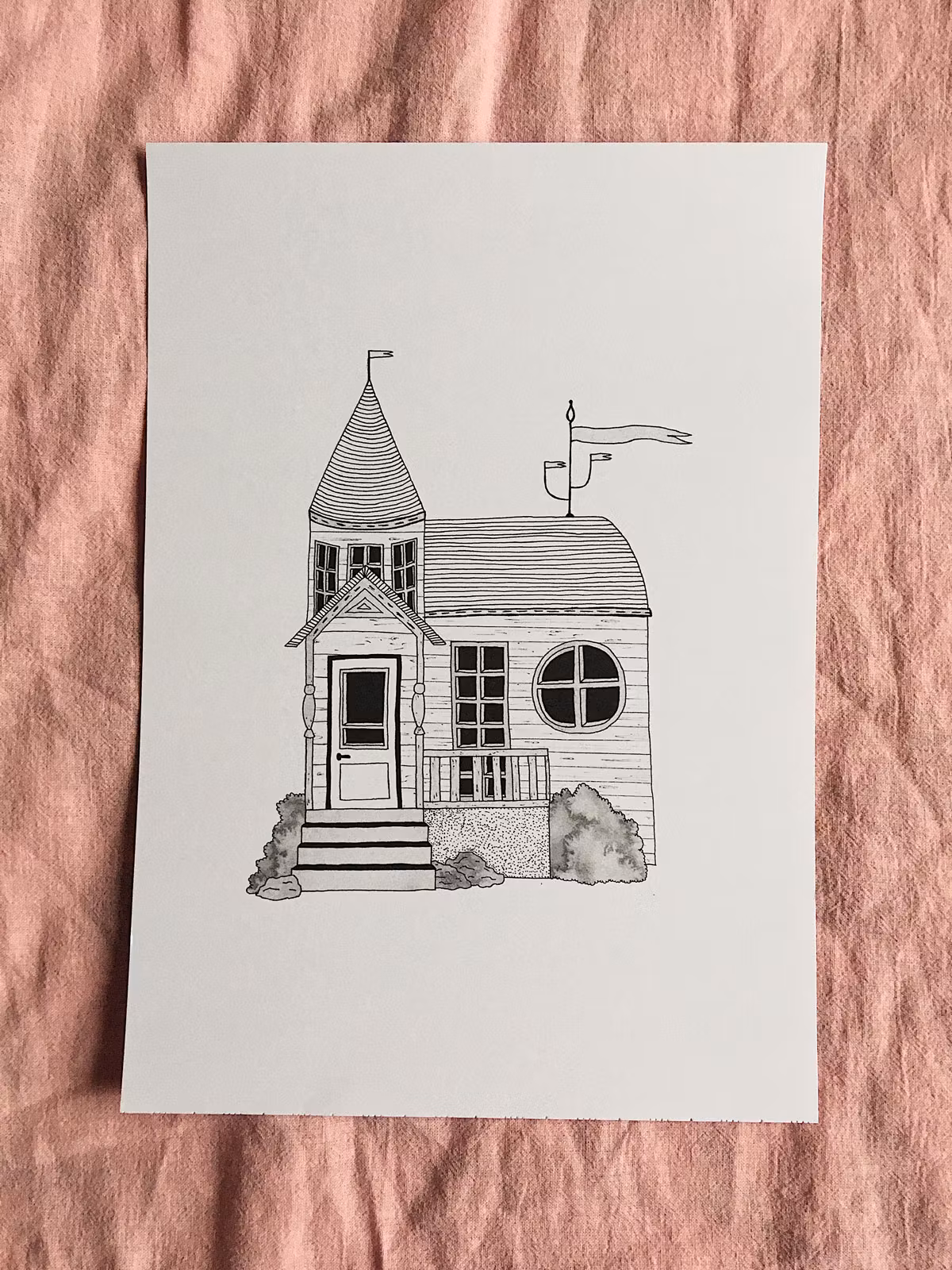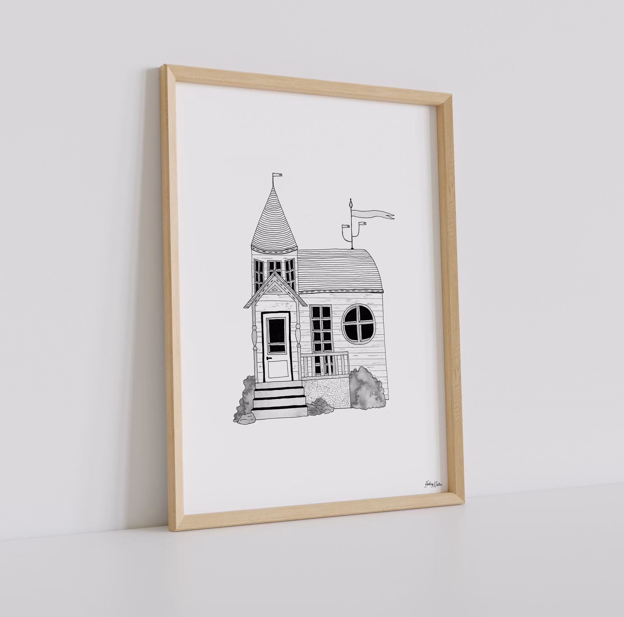 Lekfull husposter med arkitektur som sätter fart på fantasin. Vem bor i huset och hur ser deras vardag ut är frågor man kan tänka på innan sovdags. Högkvalitativt print på 180 g FSC-certifierat, matt papper. Säljs i storlekarna 21x30 cm, 30x40 cm och 40x50 cm. Tillverkad i Sverige. Ram ingår ej.